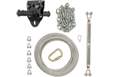 - Hardware: Cable, turnbuckle, 6 wire cable clamps, thimble, 6 ft chain/sling
