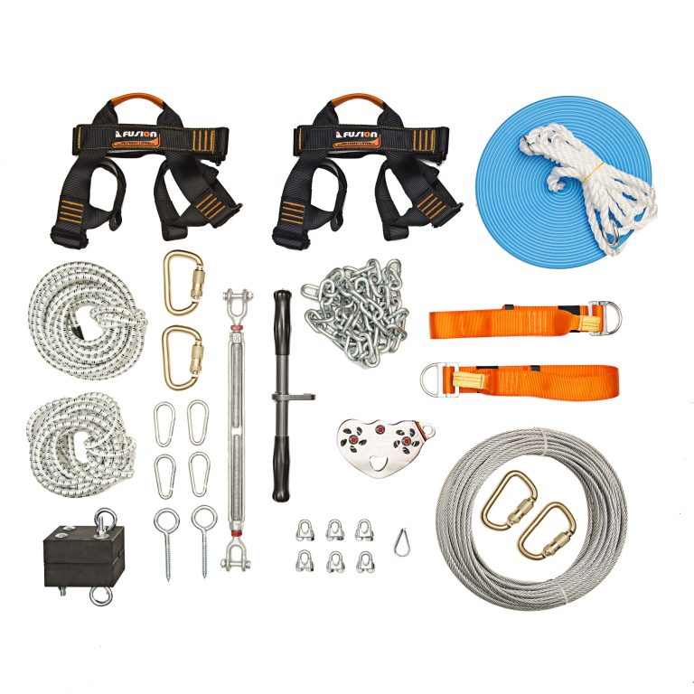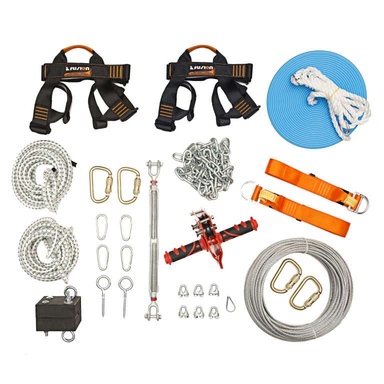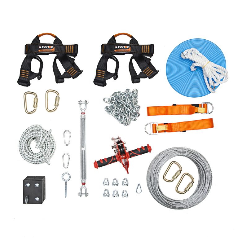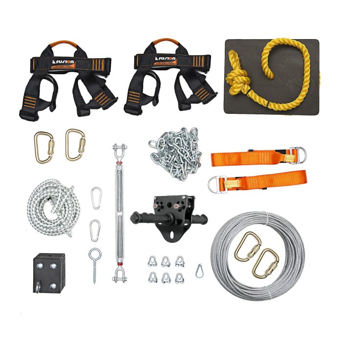 The Adrenaline Rush Outback II Zip Line Kit is built for ages 6 to 96, with two universal harnesses and a heavy-duty seat for all riders. Includes the Z-Max Trolley for easy removal and longer life.