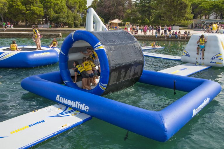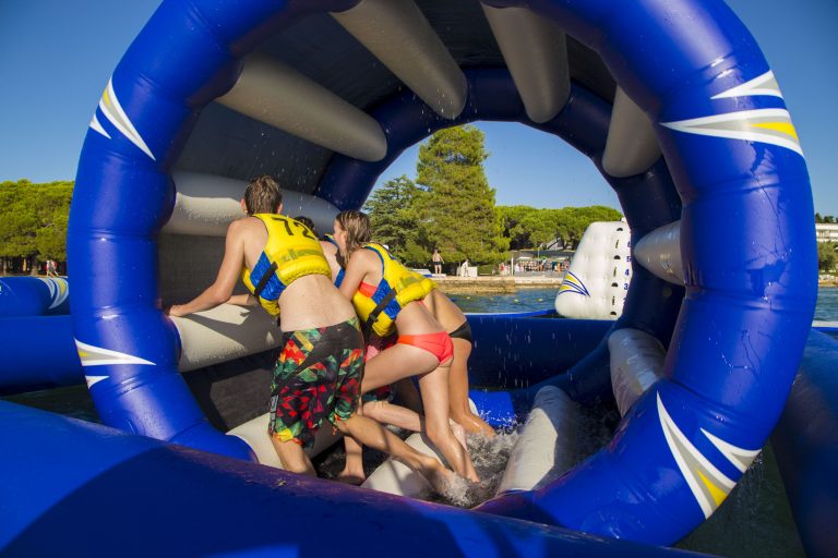 A human hamster wheel on water, this unique mesh design is a double whammy serving as a super soaker while helping to cool you off as the wheel rotates. The Cycloneβs inner tubes help with rotation while the free floating feature allows for ultimate spinning.Β Mesh sides allow water to flow through the wheel.