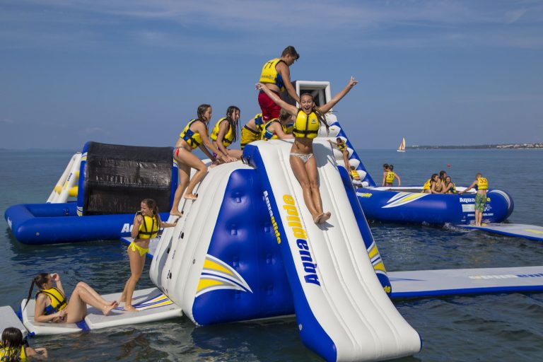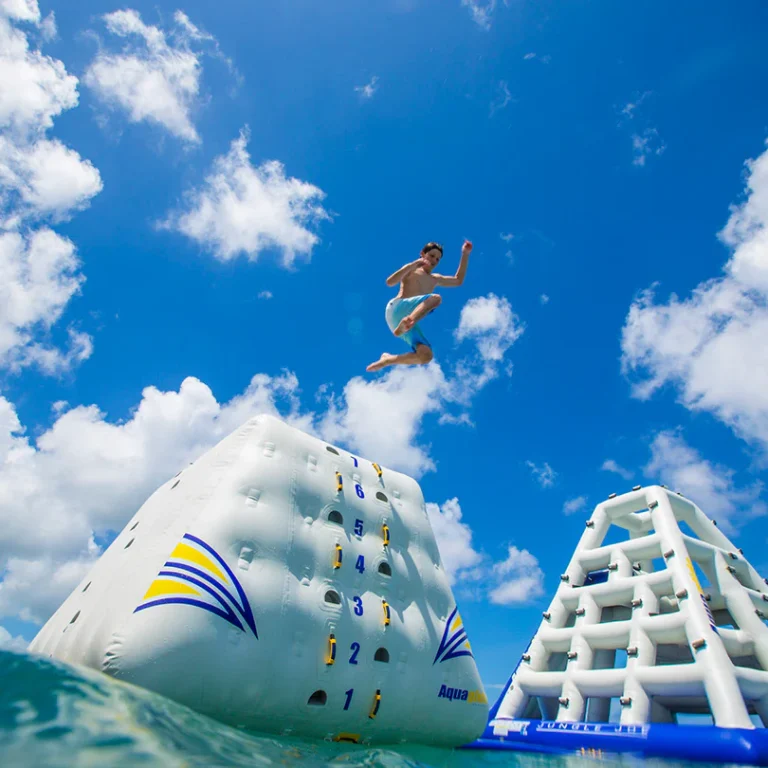 Climb, jump, or slide your way to the top with Aquaglide’s King of the Mountain! This 6.5-foot-tall inflatable is perfect as a freestanding play feature or as part of an Aquapark. Challenge your friends, race to the top, and launch into fun!