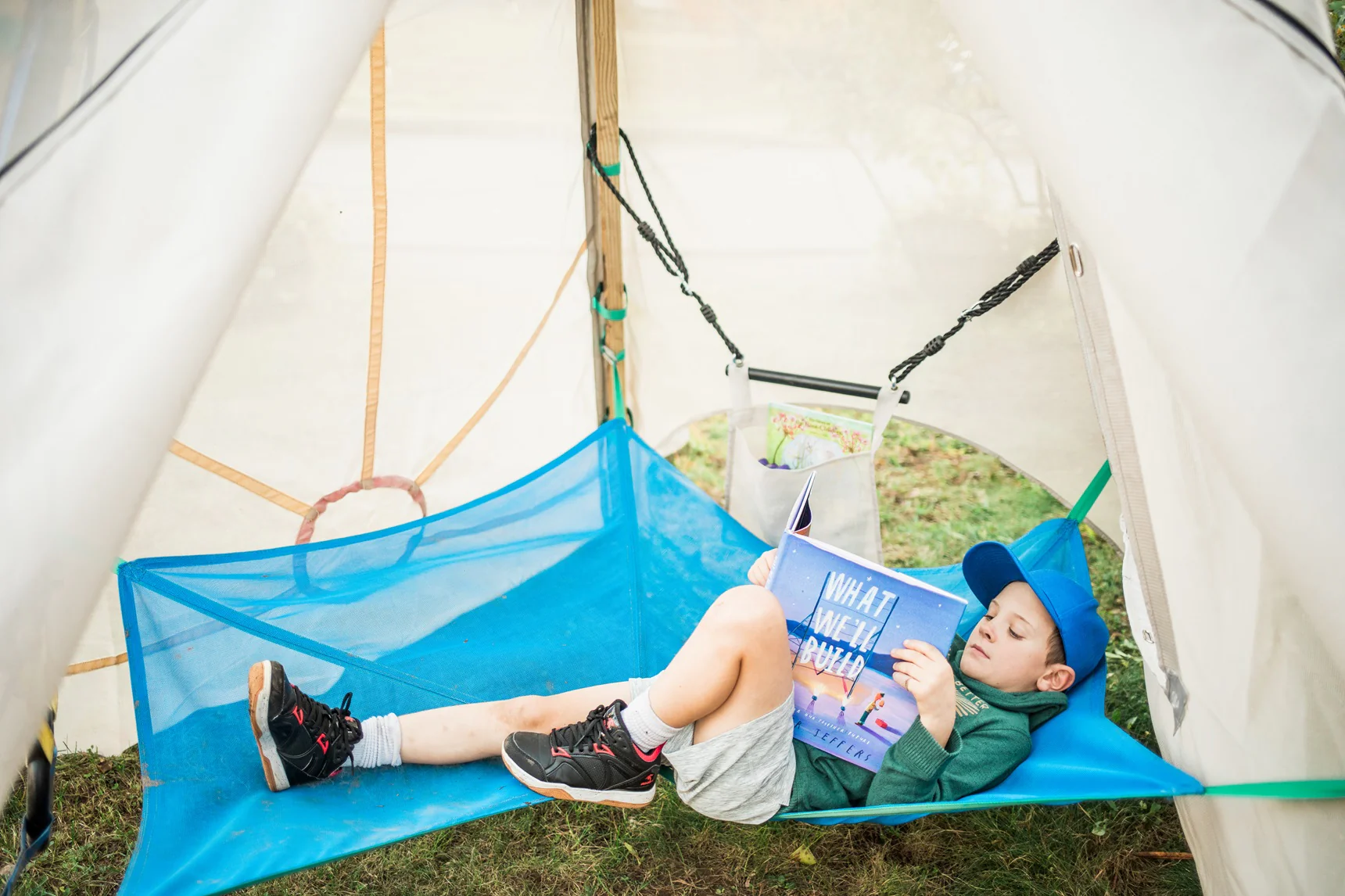 With a 10-pound capacity, this pocket is perfect for storing all your books, magazines, drinks, and games. Boasting a UV-resistant teslin pocket with reinforced grommets and a powder-coated steel hanging bar, you can easily attach it between any two points in your Bijou Mainstay.