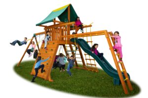 The Extreme 2 is packed with action for older kids and big backyard fun! With a 6.5 ft high clubhouse, a 12 ft slide, tire swing, monkey bars, and five swing options, this A-frame cedar playset offers exciting ways to climb, swing, and play all day.