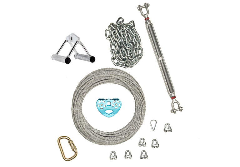 - Hardware: Cable, turnbuckle, chain, 6 wire rope clamps, 1 thimble
