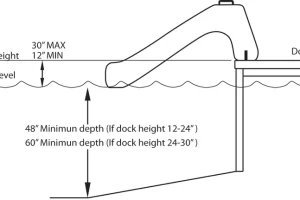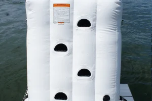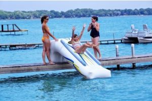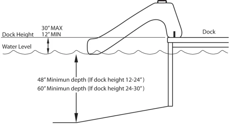 Inflates in about 5 minutes. Secure it to your dock using the included attachment straps. Suitable for docks with water depth between 48″ and 60″.