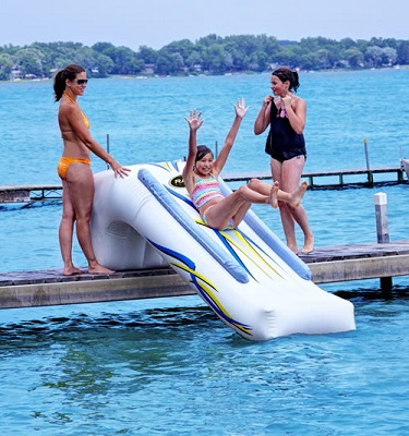 Turn your dock into a water playground with the RAVE Dock Slide! This 9-foot inflatable slide sets up in under 10 minutes and is built for fun and durability. Perfect for kids and adults alike.