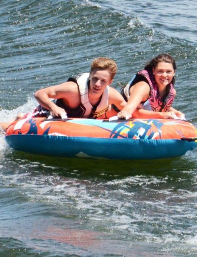 The RAVE Prism Towable is built for fast, trick-style rides on the water. With a slick Skimfast™ bottom and room for one or two riders, it’s perfect for adrenaline-pumping fun behind the boat.
