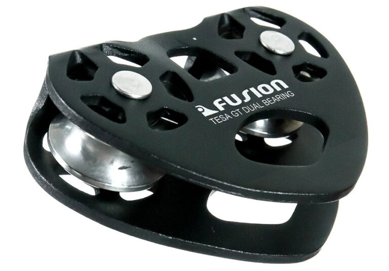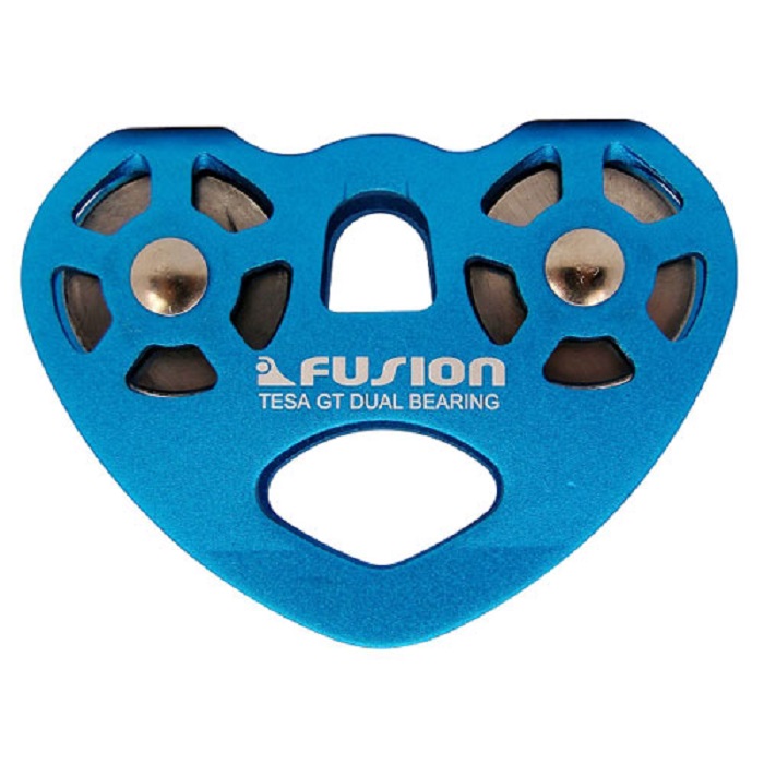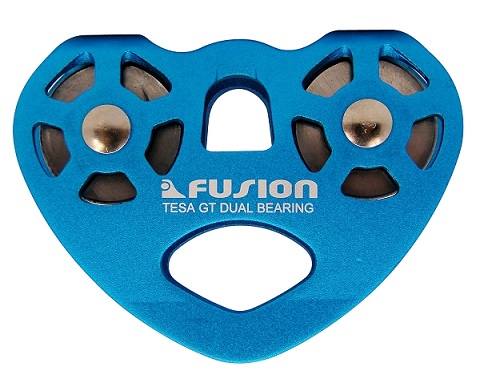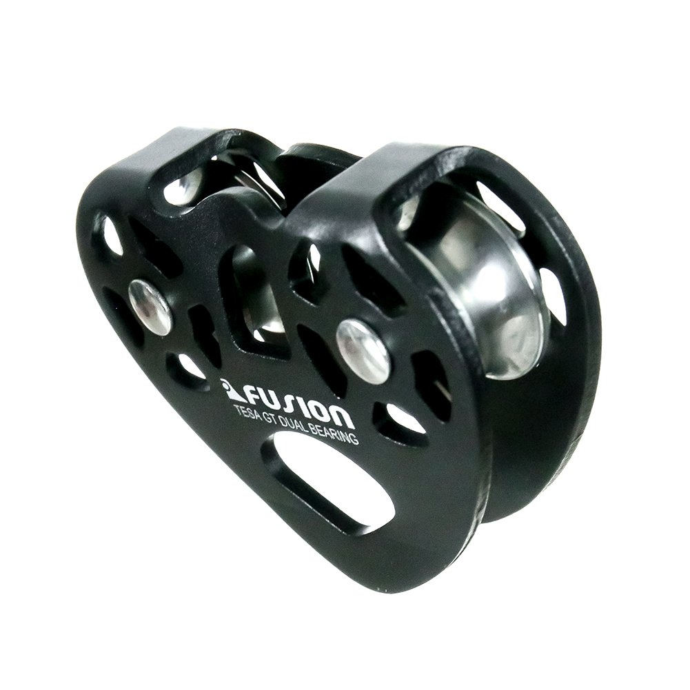 The Tesa GT Dual Bearing Speed Pulley by Fusion is lightweight, strong, and efficient, with sealed stainless steel ball bearings and dual pulley stability for smooth, fast zipline rides.