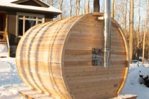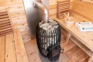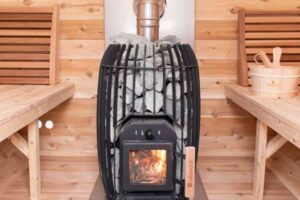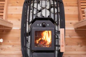 The TimberGlow14 Sauna Heater by Leisurecraft is proudly made in Canada and built to last. With a rugged steel firebox and capacity for 200 lbs (90 kg) of sauna rocks, it provides consistent, powerful heat for an authentic wood-burning sauna experience. Designed for flexible venting and years of reliable use.