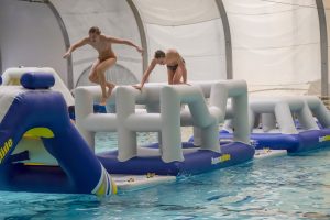Climb, crawl, or splash your way through the Vista 10™! This inflatable water challenge offers high roads, hidden passages, and mesh-floor splash zones for up to 8 users. Great for custom obstacle courses.