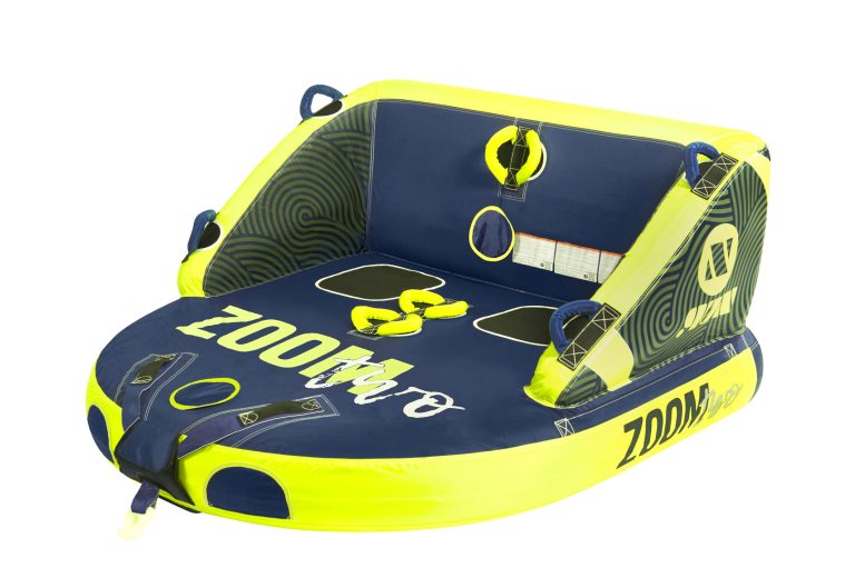 The ZUP Zoom towable tube lets you ride your way, sit back on the comfy couch-style seat or flip it for a chariot-style kneeling ride. Available in 2 or 3 rider options, itβs built for fun in both directions.